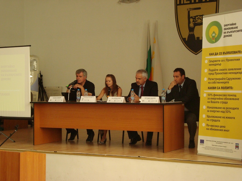 МРРБ стартира в Петрич информационна кампания по проект „Енергийно обновяване на българските домове” на пресконференция, проведена днес в град Петрич. Проектът се осъществява с финансовата подкрепа на Оперативна програма „Регионално развитие“ 2007 – 2013 г., съфинансирана от Европейския съюз чрез Европейски фонд за регионално развитие. Информационни дни по проекта в град Петрич ще се проведат в периода 01-02 октомври. Днес пред паметника на Антон Попов от 15 до 19 ч. и на 02.10 на градския площад, пред читалище Братя Миладинови от 15 до 19 ч. За всяка одобрена сграда собствениците ще получат финансова помощ до 50% от стойността на бюджета за обновяване на съответната сграда. От оперативната програма ще се покрият изцяло разходите за обследване за установяване на техническите характеристики. Основните критерии, на които трябва да отговаря сградата, са: да е многофамилна жилищна сграда и да е предназначена за постоянно обитаване, както и сградата да се намира в град Петрич.