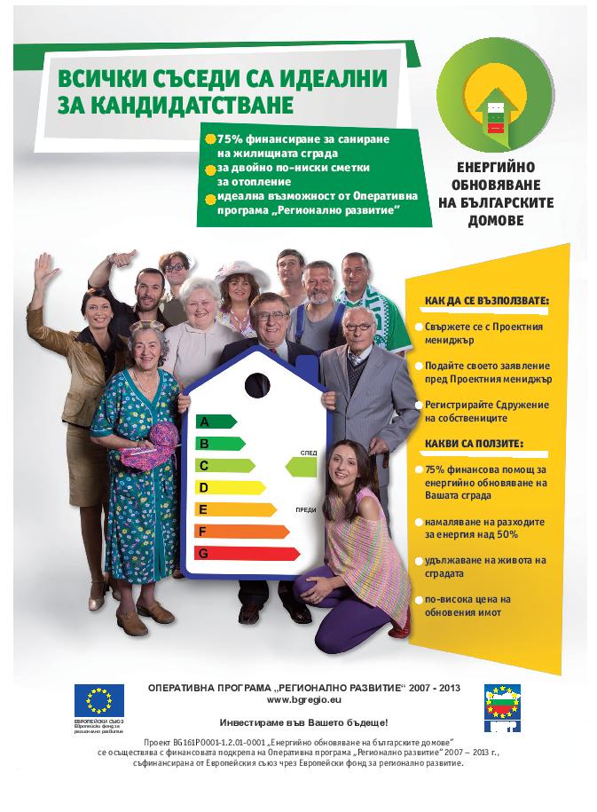 От ManagerЗа трети пореден път Министерството на регионалното развитие стартира информационна кампания „Енергийно обновяване на българските домове”, осъществяван с финансовата подкрепа на ОП „Регионално развитие“ 2007 – 2013 г. Информационните дни по проекта ще се проведат на 25 и 26 септември от 16.00 до 19.30 часа пред Градски универсален магазин в Петрич. По време на информационна кампания ще се проведе и среща с управители на етажната собственост, на която ще се даде отговор на въпроси и казуси, свързани с участието на собствениците в проекта и всяка допълнителна информация, интересуваща лицата. Срещата ще се проведе на 25 септември от 17.30 ч. в залата на общинска администрация Петрич, ет. 1.