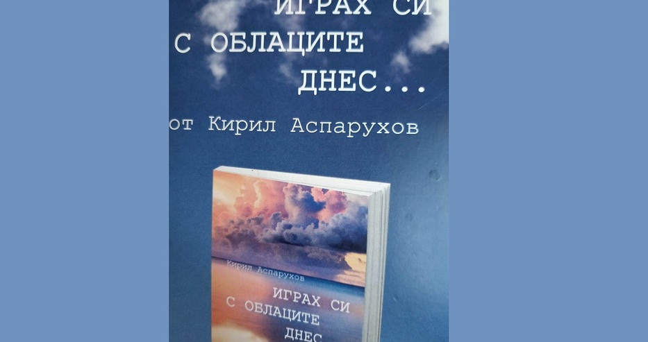 От ManagerПоетът, журналист и шоумен Кирил Аспарухов представя днес пред ученици от Профилирана гимназия „Пейо Яворов“ своята нова стихосбирка „Играх си с облаците днес...“. Неслучайно именитият петричанин избира премиерата в родния му град да бъде пред ученици на гимназията, която самият той е завършил някога. Заради трайната диря, която преподавателите са оставили у него. Стихосбирката е 21-та поред книга, която отличеният с наградата „Златен век“ на Министерство на културата петричанин издава.